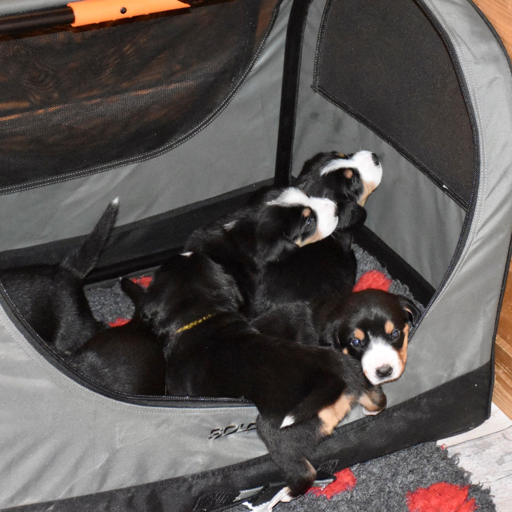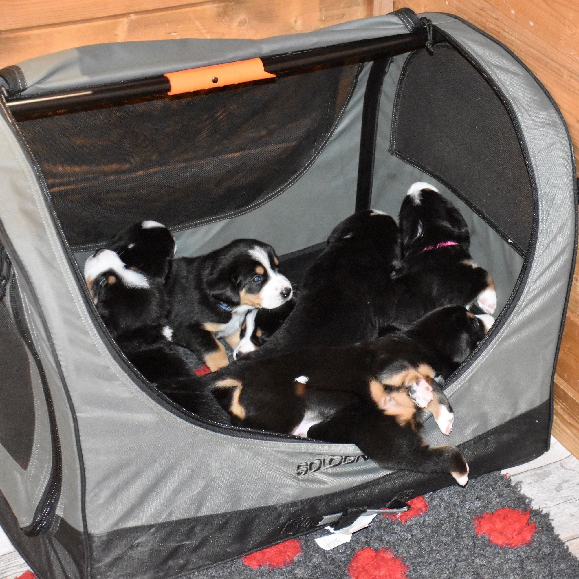 Schönes Wetter im Mettinger Land; viel Spiel und Spaß im Garten, im Auto mitgefahren, Wurfabnahme des SSV erfolgreich bestanden und am Ende geht‘s in‘s neue Zuhause: nach Mettingen, nach Hessen, in‘s Rheinland und Luisa hat die weiteste Reise nach Tschechien vor sich…